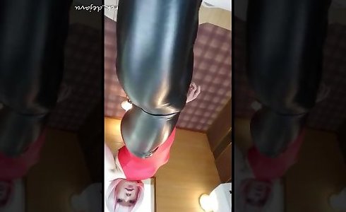 Femdom Mistress In Black preparing mon Leggings - Handjob Her Slave