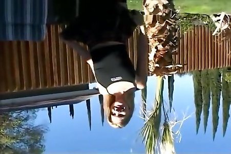 令人兴奋的kim kennedy在游泳池旁边抽水