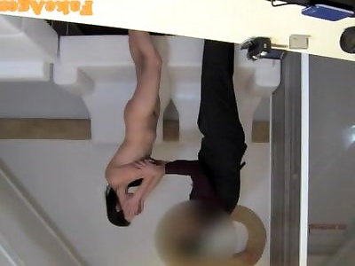 Rubdown Rooms Innocent and adorable black haired sweetheart rides both boys firm