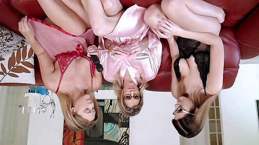 Lesbian threesome on the sofa with kinky Cory Chase & Addi Lee