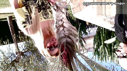 Anita Dark plays with her cunt by pool side