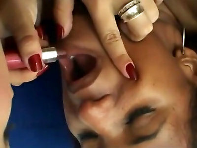 lipstick application deep kissing teenager lesbos