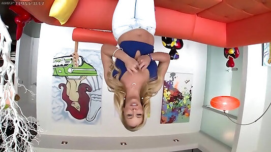 Killer blonde nymph frolicking with herself and deepthroating manhood in this astounding shag video