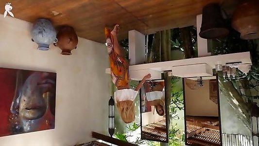 Nubile babes douche and eat out