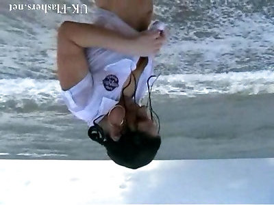 Winter bathing honey Crystel Leis beach onanism and public playing of insane exhibitionist in naturist hidden cam adventures