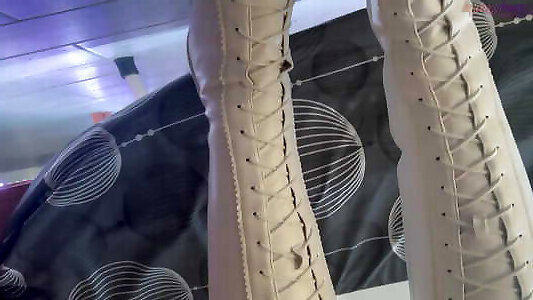 House Waitress Traps and Dominates you in White Dangerous Boots - TamyStarly - Edited Version CBT, Ballbusting