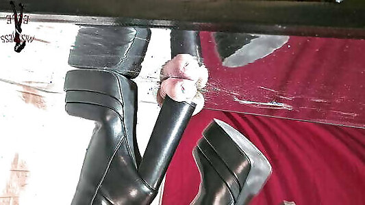 Mistress elle with her shiny heels breaks her slave&039;s cock