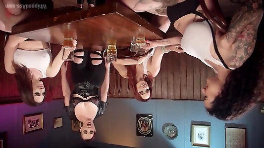 Lezzy Women Bang As Gang Using Strap On Dildo In Bar Part Two