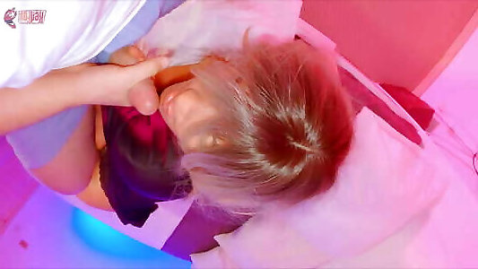 Full mouth of cum. Cum on feet. Cum on tits.