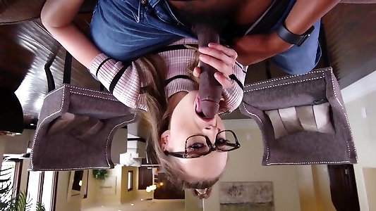 Secretary in Glasses Sucks trap sissy fucking on Her Knees