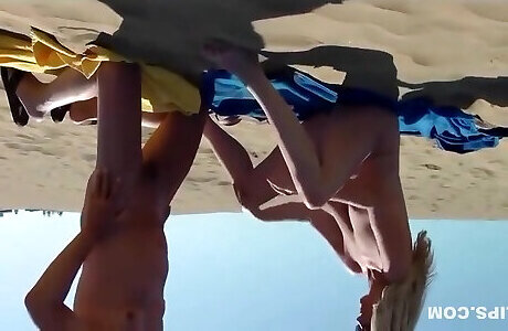 Amateur voyeur porn displays huge-titted whores on a beach