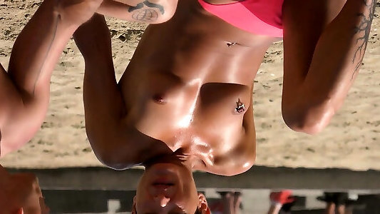 Fabulous black-haired Bare-breasted Beach Voyeur Public Nude melons