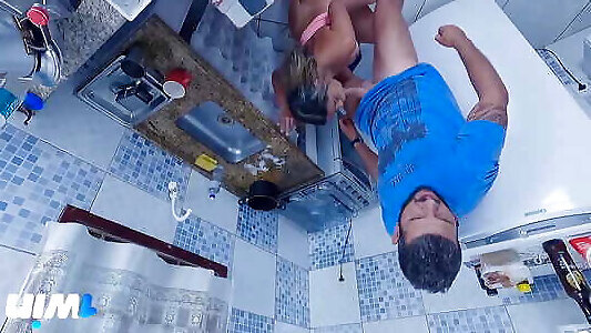 The hot neighbor washed the dishes here and even gave me the ass!