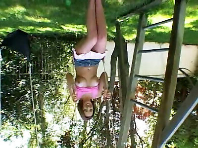 Saucy ash-blonde honey fellates a dark-hued dinky by the pool