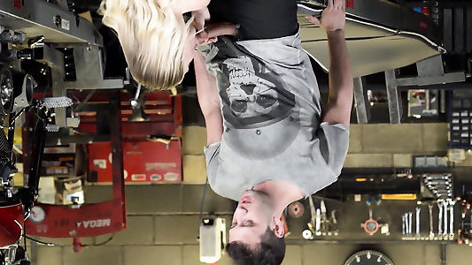 Biker doll with perfect set of enjoy bra-stuffers is porked from behind at work