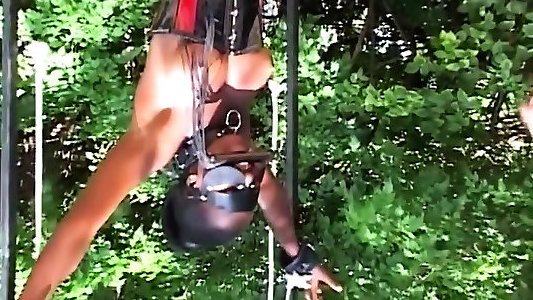 Trussed up ebony mega-slut