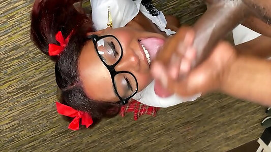 Kinky Black School Super-bitch Loves To Gargle It For Additional Grades!