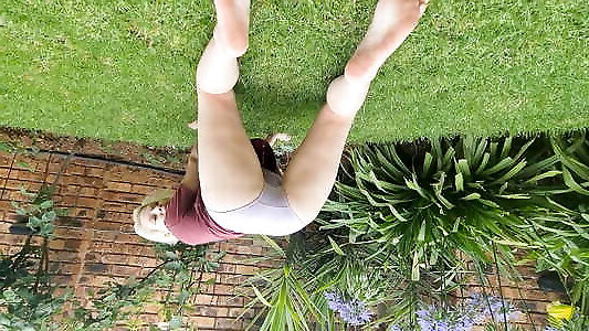 Compilation of super-hot platinum-blonde peeing herself outside in different garbs