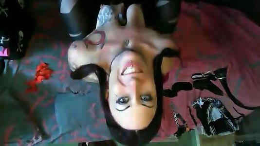 Enormous boobies purple hair teenage gives blow dt on cam