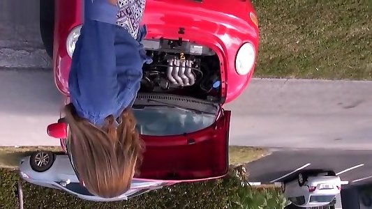 Scorching women Jessie Lee and her gf got their van bankrupt and picked up by two puss hungry dudes and humped up.