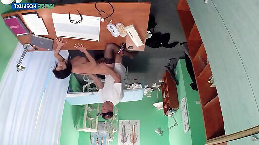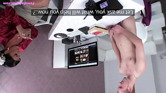Girl agent slender lvana Noiret sits on her candidates yam-sized spear