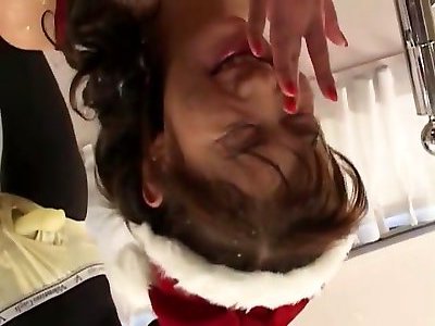 Slutty Asian sucks cock at Christmas