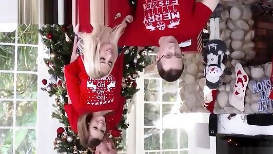 Teenager screws super-naughty stepbro after deepthroating jizz-shotgun at christmas