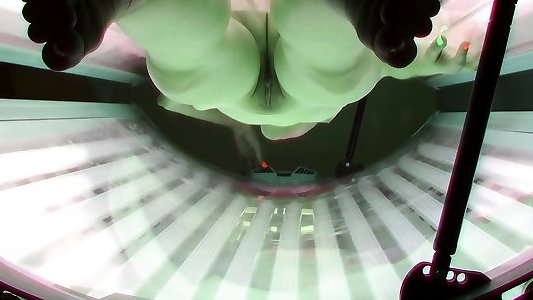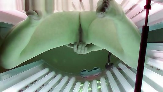 Blonde plays with her pussy in solarium