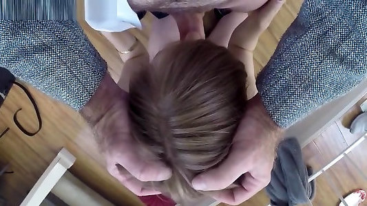 Perverted Stepdad Helps Stepdaughter with Blindfolded Taste Test Cum in Mouth Swallow