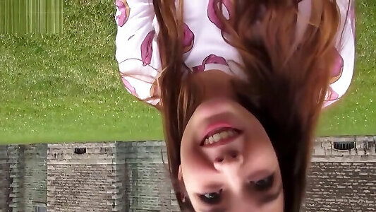 Slim redhead stepmom near swimming pool Heaven packs breezy with yam-sized dildos