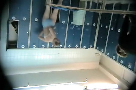 Round spied in the pool cabin dressing