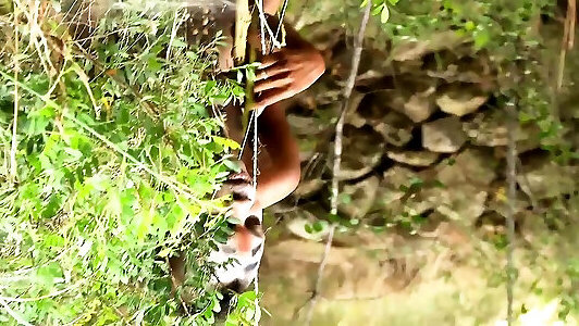 Lesbian Ebony Yoga Instructor Seduces a White Student for Outdoor Sex