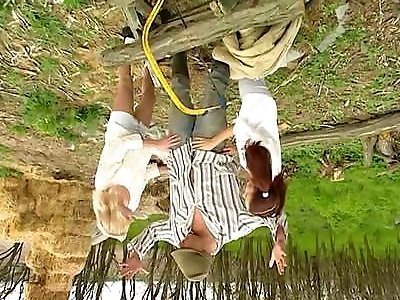 Assfucking three way on nature with Kelly&Elizabeth