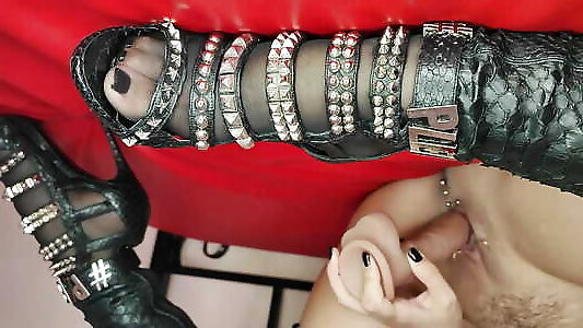 Boot domination riding mistress suck her own toes while fucking