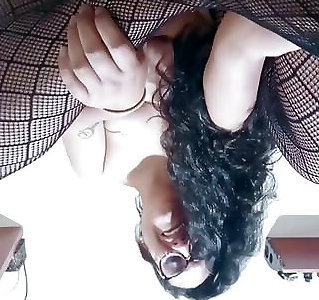 Huge-boobed Dark Haired Female Pleasing Herself On Cam