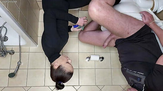 Blowjob morning. Wife in toilet