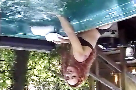 Redhead MILF with big boobs sucks a cock and gets fucked in the strip club