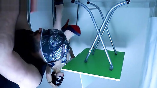 Mistress Elle trample her slaves cock on table with large high heels