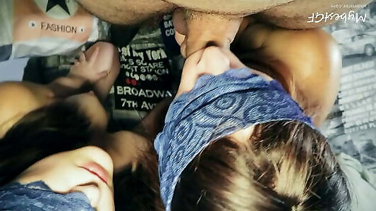 2 sexy brunettes share a wang in homemade FFM clip