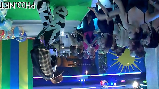 Beautiful babes please their shaved cunts at the strip club in cum control with count down lesbian orgy