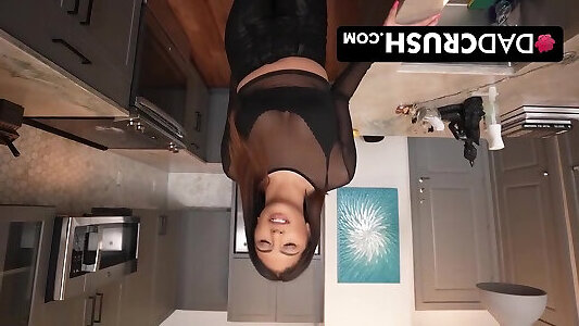 Ike pounding Abi Grace labia on the kitchen