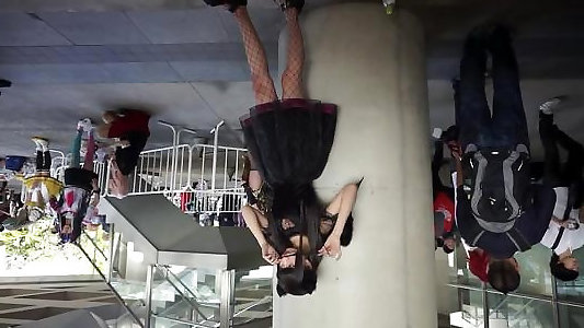 Hanging on a swing Chinese babe gets waxed