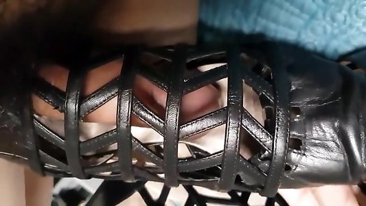 Nymphs Out defloration by dildo - Hairy girl-girl black-haired strapped up and gobbled