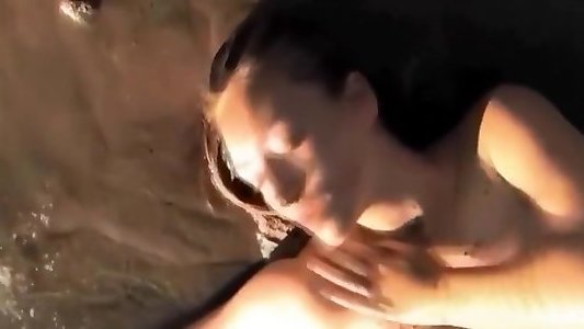 Brown-haired xcx xxxx likes while gargling a beefstick outdoors in the backyard