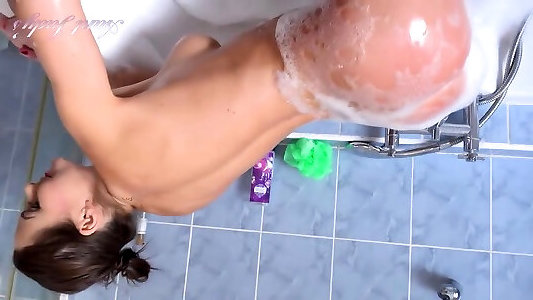 Judy Smirk drains rubbing her vagina with her soles