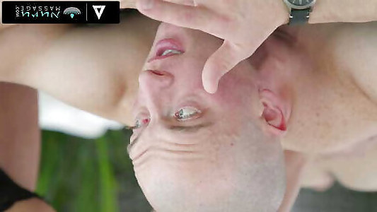Seeing the brunette tanning her milf body outdoors makes him ecstatic to pummel her twat