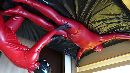 Latex fetish. Rubber. Two sexy babes get oiled up. money mofohd and oil