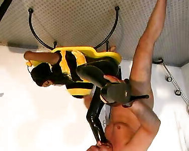 Spandex gasmask chained and porked