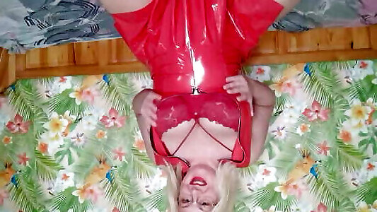 Amateur Grandmother Wanks in Latex - CFNM