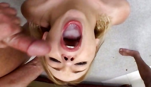 Towheaded Missy Monroe gulps up a full load of sauce after a rock-hard lay